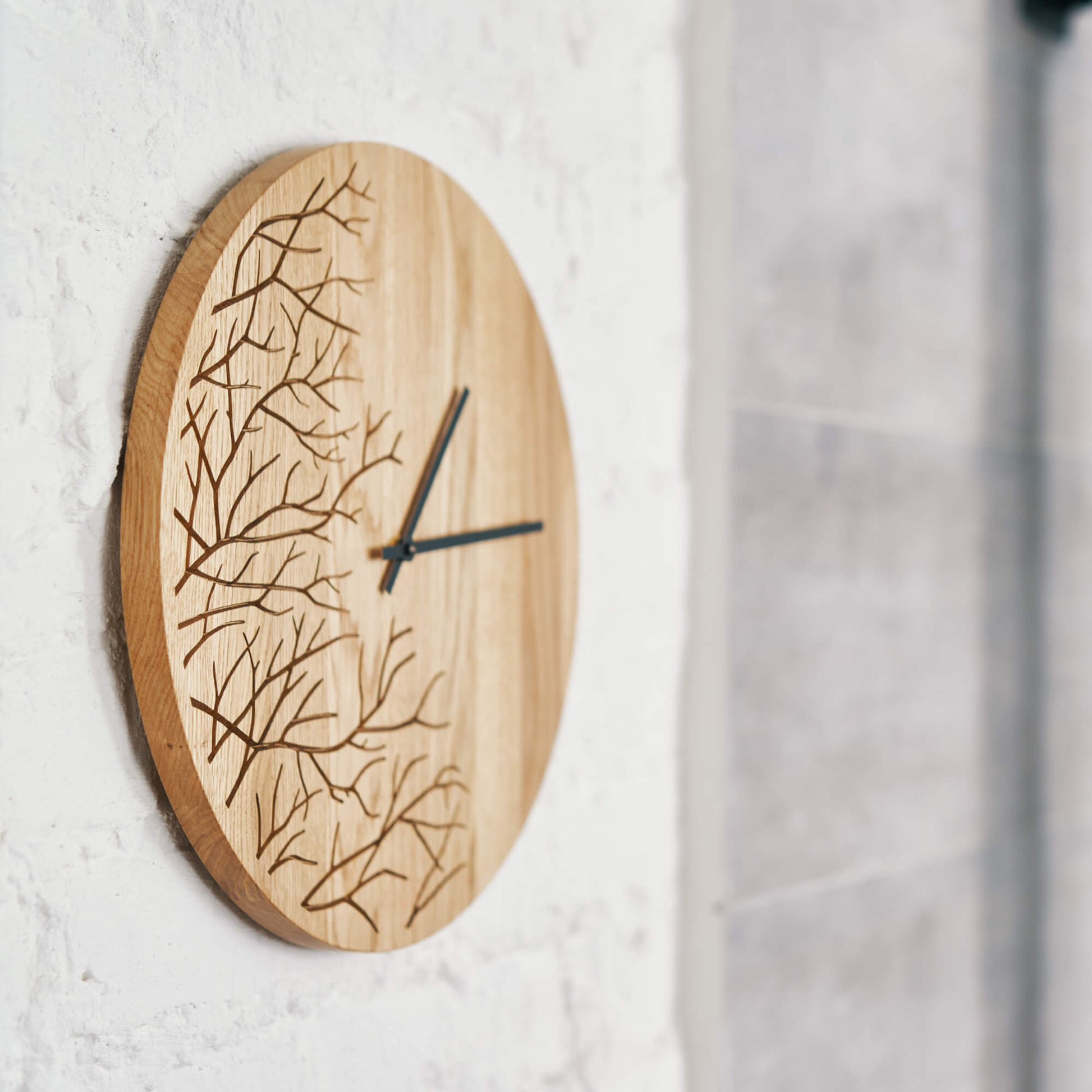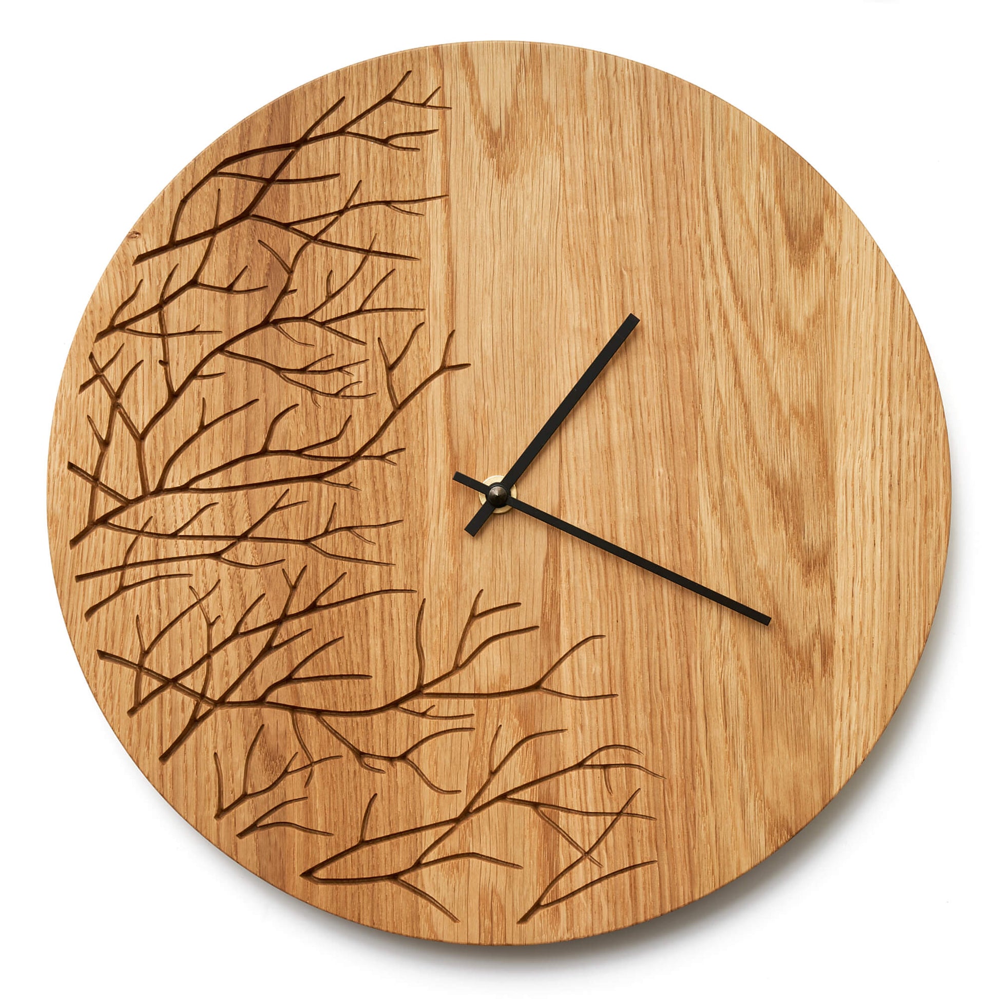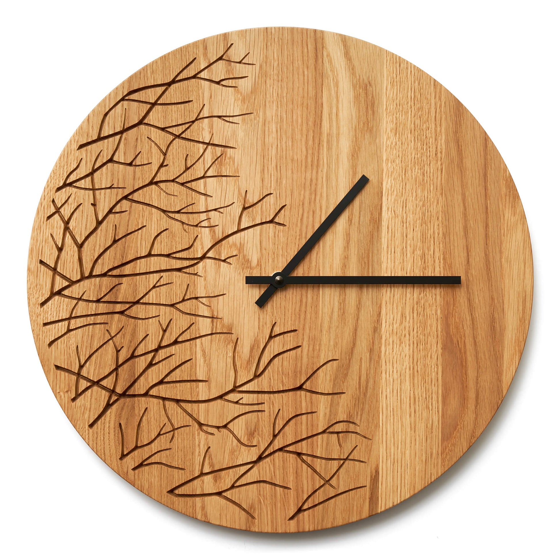Clock made from solid oak wood, perfect for a modern home.